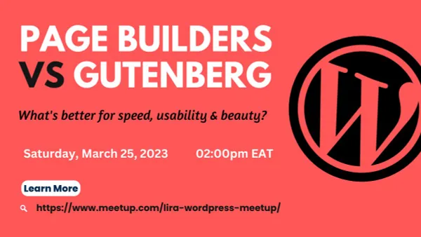 Online Lira, UgandaWhile using WordPress, one is often faced with different choices. One of the most urgent choices is to choose between less popular block editor (Gutenberg), and much popular page builders such as Elementor. On Saturday, March 25, 2023, Lira WordPress Meetup will convene online to discuss this topic, share experiences from others, and recommendations.